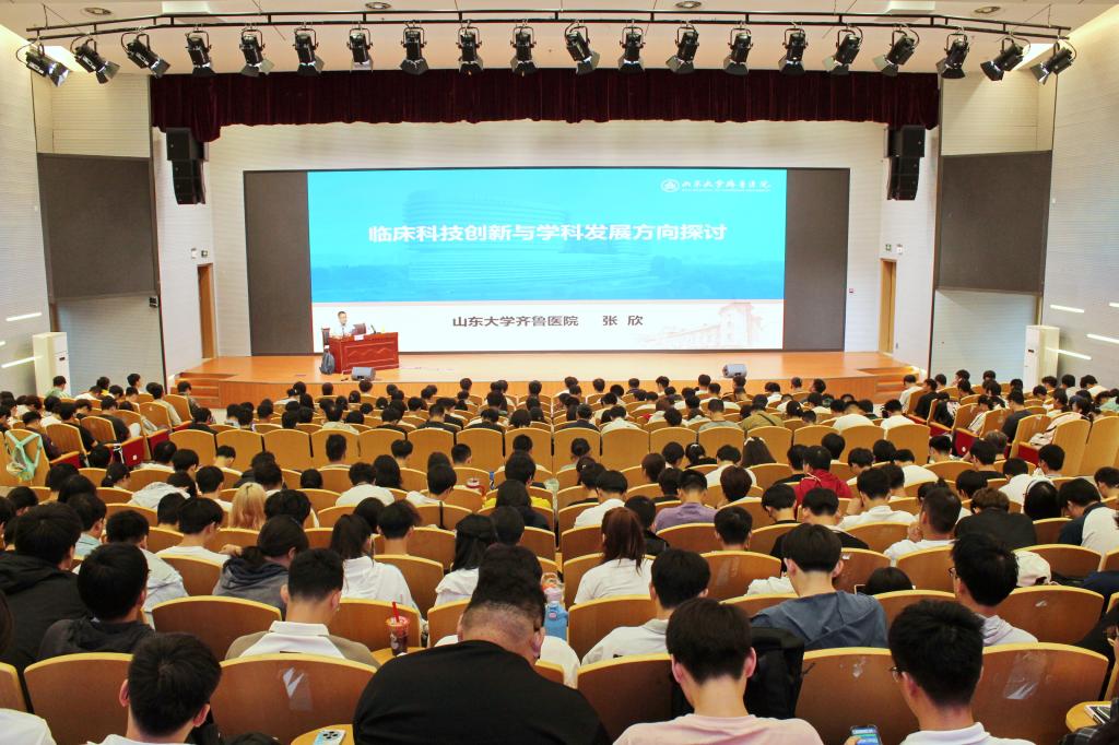 张欣以《临床科技创新与学科发展方向探讨》为题,从自己的求学生涯和职业生涯出发,带领学生了解如何进行科学研究,他强调,科研来自于临床工作,要善于思考、发现问题,用创新思维开拓学科发展的新局面。