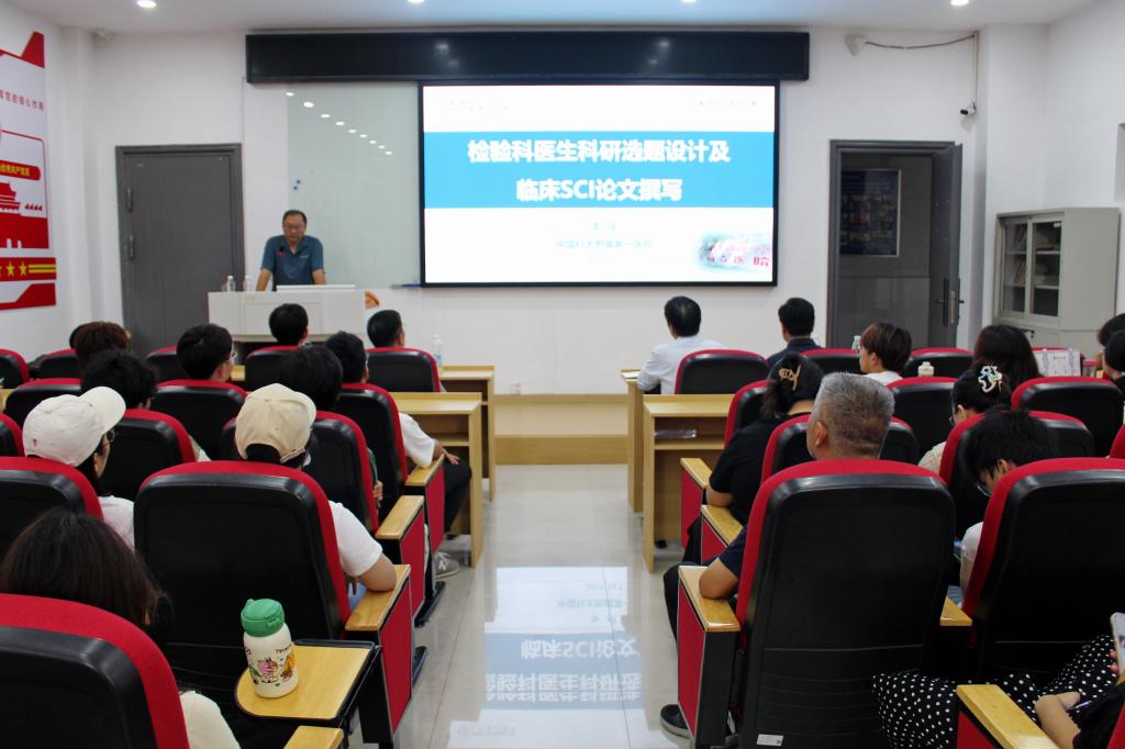 李庆以《检验科医生科研选题设计及临床SCI论文撰写》为题,以检验科医生科研选题设计及临床SCI论文撰写为主题,从检验科医生科研选题与设计、临床研究SCI论文撰写、临床相关研究工作介绍三个方面进行阐述。他详细介绍医学科研的类型及特点、选题、科研设计、SCI论文撰写等,并展示课题组近年来的研究成果。