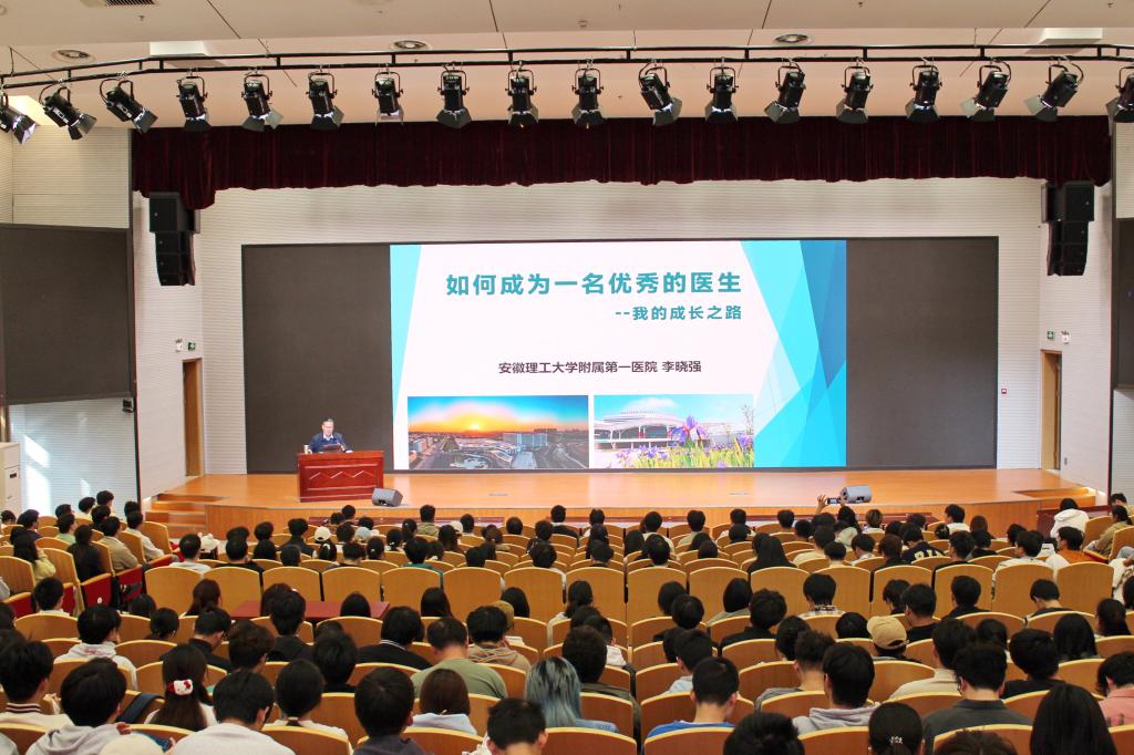 10月28日,应医学院邀请,安徽理工大学第一附属医院院长李晓强教授在舜耕会堂作了题为《如何成为一名优秀的医生——我的成长之路》的学业成长报告。医学院院长胡东主持报告会。
