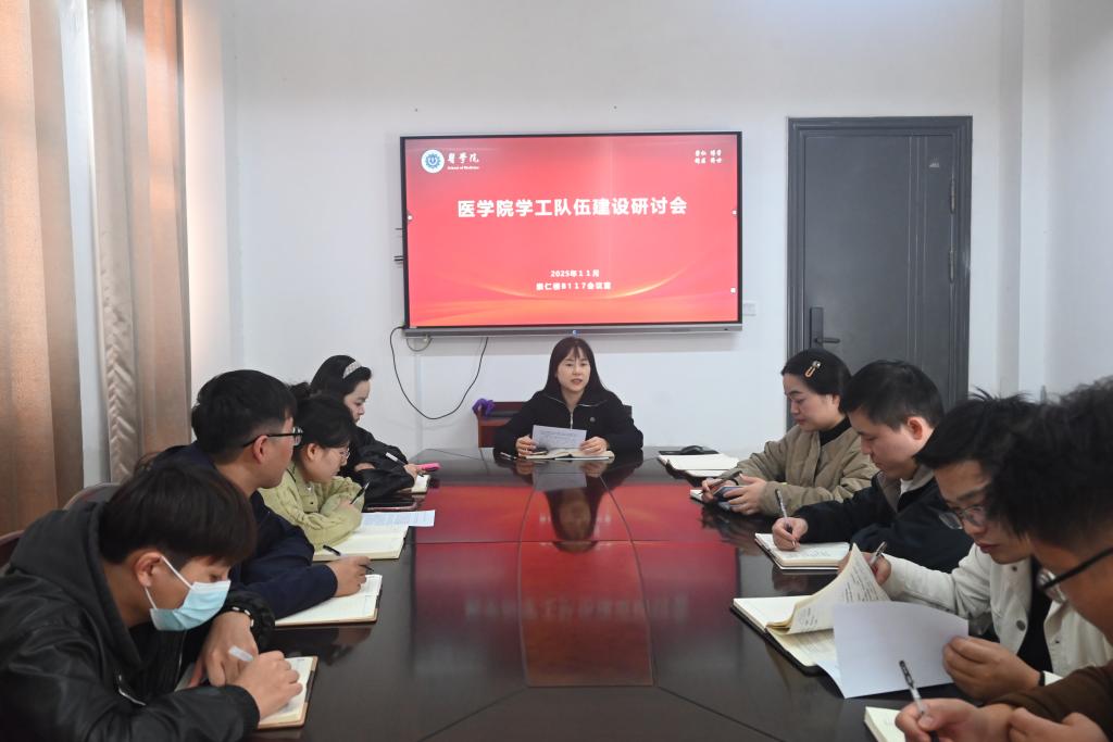 11月11日下午,医学院在崇仁楼B117会议室召开学工队伍业务能力提升专题会,本次会议聚焦思想引领建设和考研就业经验分享两大核心主题,学院党委副书记周静以及全体辅导员参加。