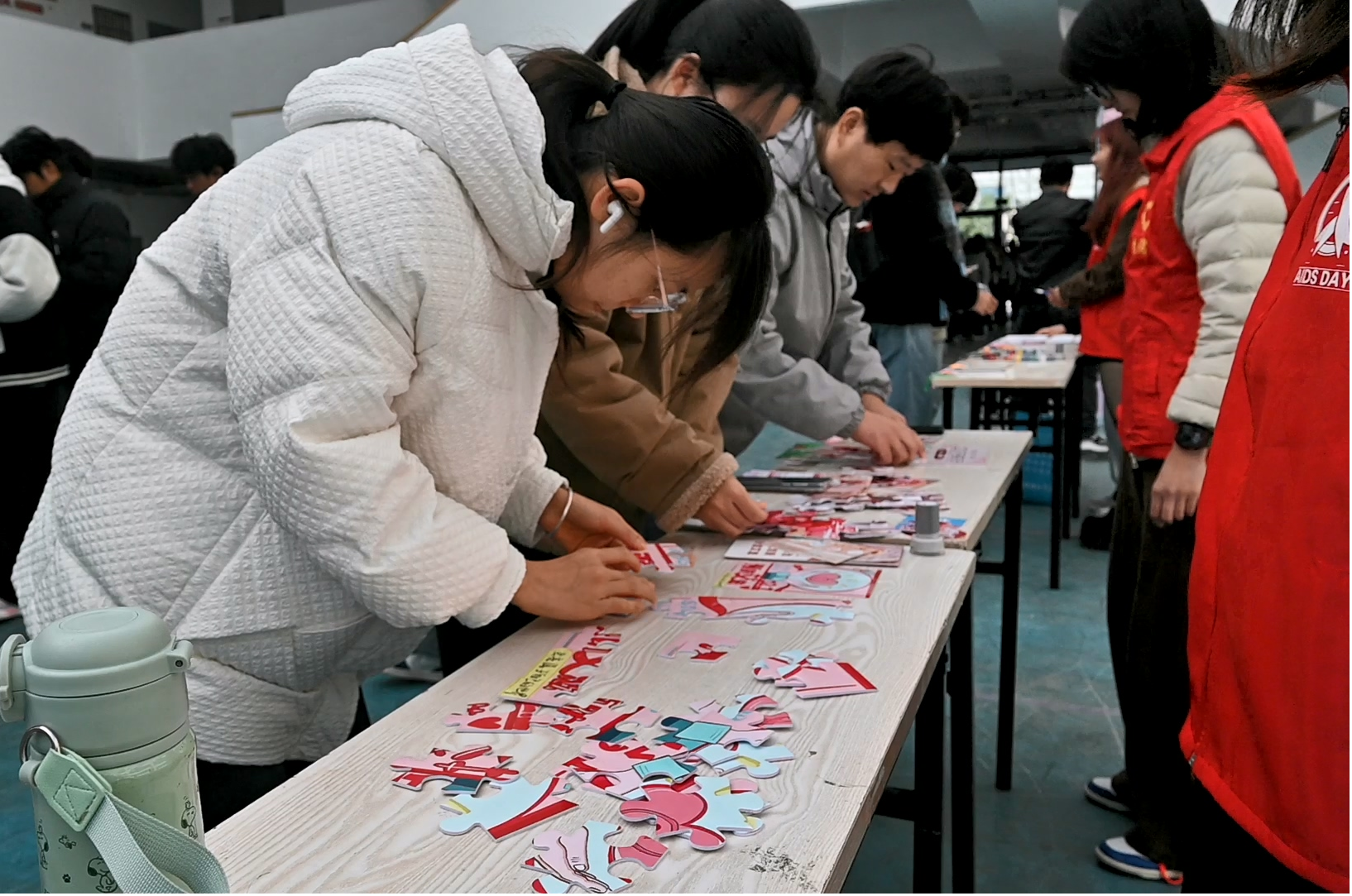 同学们参加防艾拼图活动