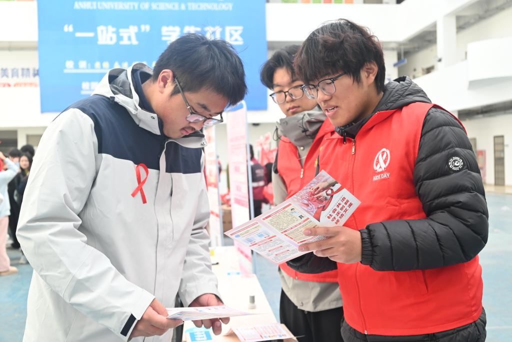 志愿者向同学们宣传防艾知识