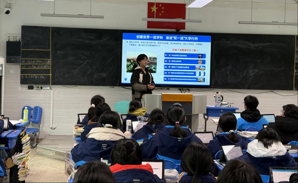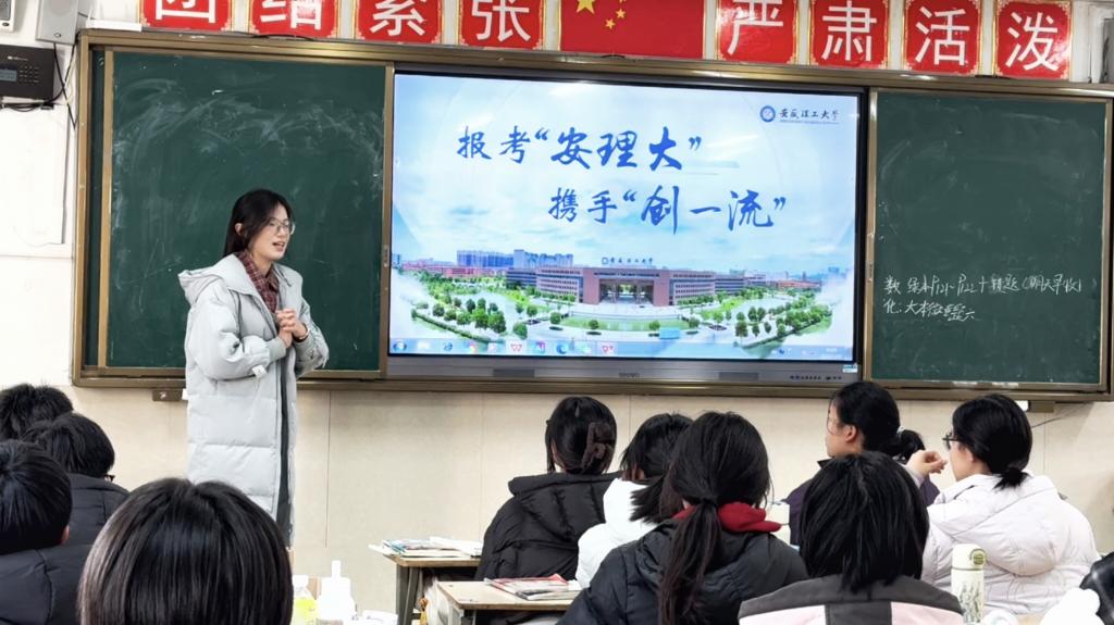 我院学子积极响应学校号召,回到高中母校开展“我为安理代言”主题宣讲活动。学子们带着对学校的热爱与对学弟学妹的期许,通过PPT展示、现场分享、互动答疑等形式,全面介绍安徽理工大学的办学历史、学科特色、师资力量、校园文化及人才培养成果,分享大学学习生活感悟与备考经验。