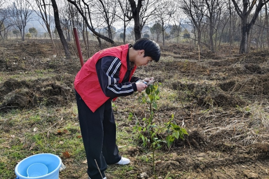 活动现场,志愿者们身着统一服装,手持铁锹、水桶等工具,迅速投入到火热的劳动中。大家分工协作,默契配合,挥锹铲土、扶苗填坑、踩实浇水。一株株新栽种的树苗迎风挺立,为春日的舜耕山增添了一片生机勃勃的绿意,也在学子们心中播撒下绿色的希望。
