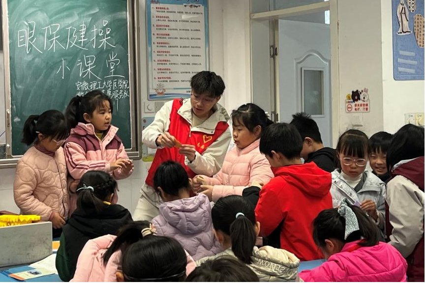 志愿者走进安理附小开展健康陪伴服务,依托健康素养培育相关知识,指导孩子们规范完成眼保健操,培养良好用眼习惯;带领学生折纸爱心、书写敬老祝福卡片,以手工互动搭建童心向老的温暖桥梁,让雷锋精神与敬老爱老理念在孩子心中萌芽。