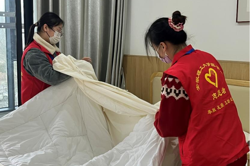 志愿者为老人换被套