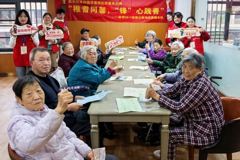 此次活动是学院推动学雷锋志愿服务项目化、多元化的实践探索,实现了校园与养老机构服务场景的精准覆盖。志愿服务队将持续培育“微尘聚光”志愿服务品牌,推动关爱儿童、敬老助老志愿服务常态化开展,让药学学子以微光聚炬,用实际行动诠释雷锋精神与医者情怀。