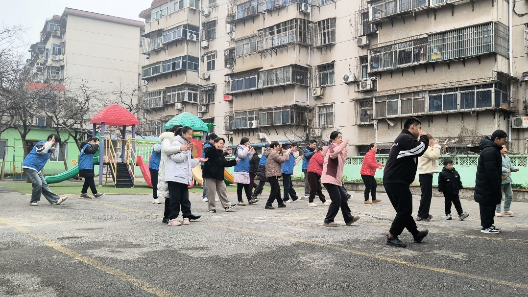 活动伊始,志愿者们在老师的引导下有序抵达活动场地。他们认真跟随学校老师学习律动操动作,以整齐的节奏、亲切的口令,陪伴孩子们完成早操。操场上,欢声笑语交织,温暖在律动中悄然传递。