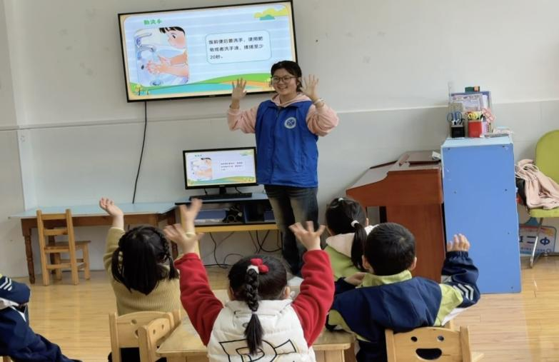 3月20日,志愿者走进附属幼儿园,用童趣语言宣讲雷锋精神,带领孩子们歌唱雷锋,并开展健康科普,手把手教授七步洗手法,普及卫生知识,守护幼儿健康成长。