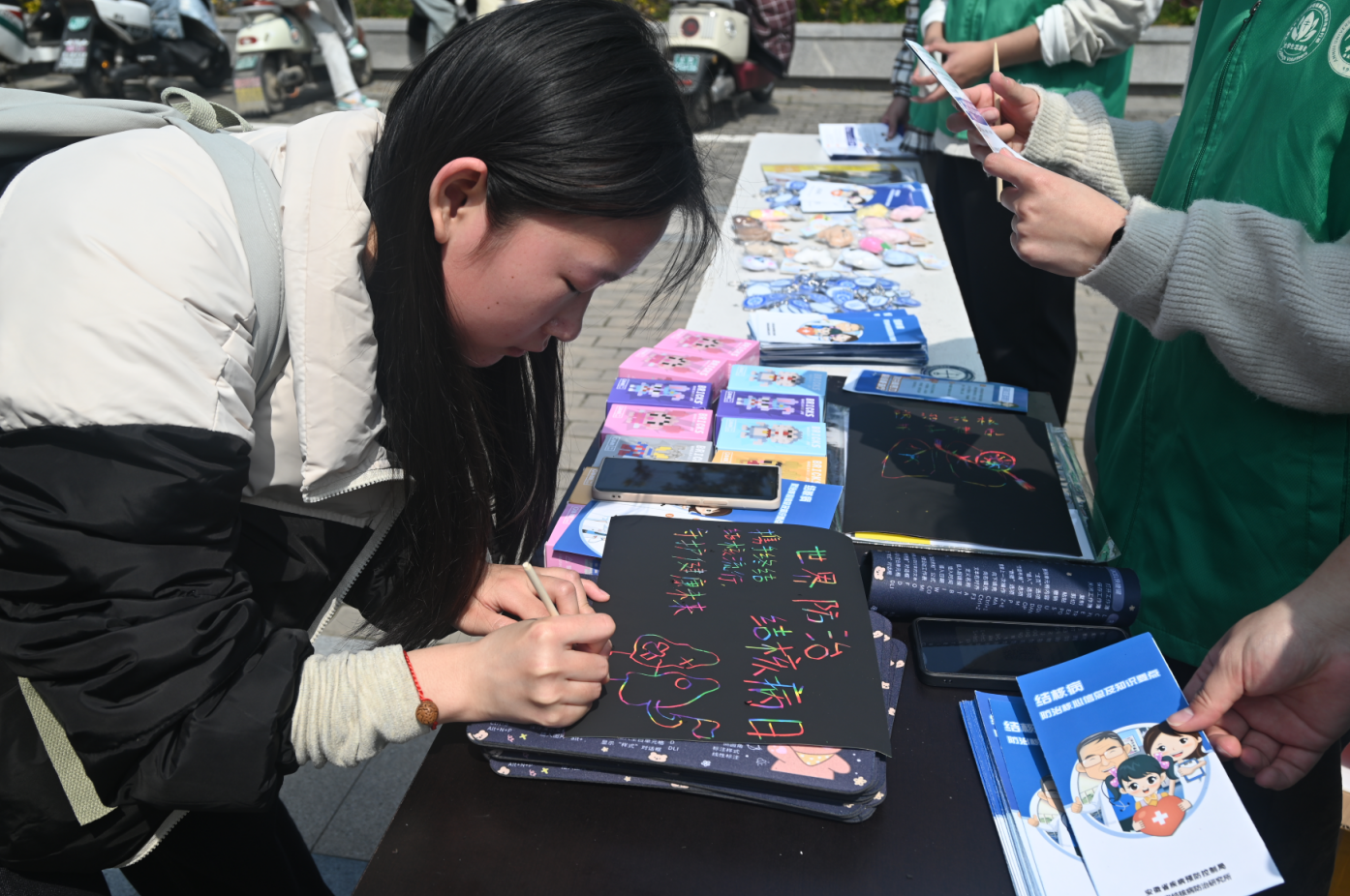 活动现场,志愿者们统一着装标识,通过发放知识传单、张贴主题海报、面对面讲解等形式,普及结核病的传播途径、典型症状、科学预防及规范治疗等核心知识,并结合医学专业视角与真实案例,帮助师生澄清认知误区,引导养成勤通风、戴口罩、规律作息等健康生活习惯。