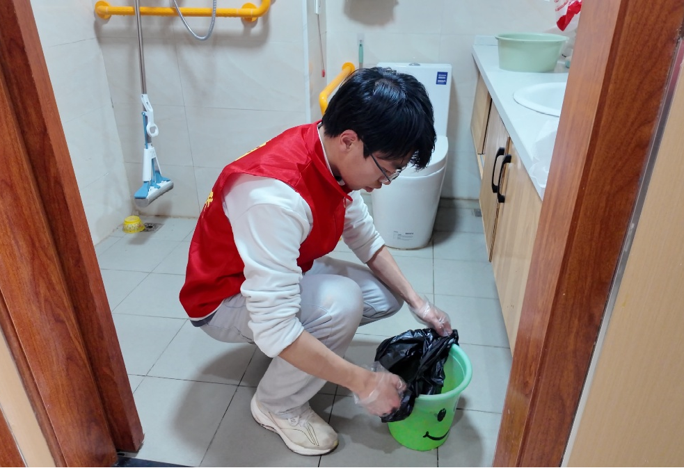 队员分工协作,对老人房间进行全面清扫整理,打造整洁舒适的居住环境,以精细化劳动服务践行志愿精神,让敬老助老落到实处。