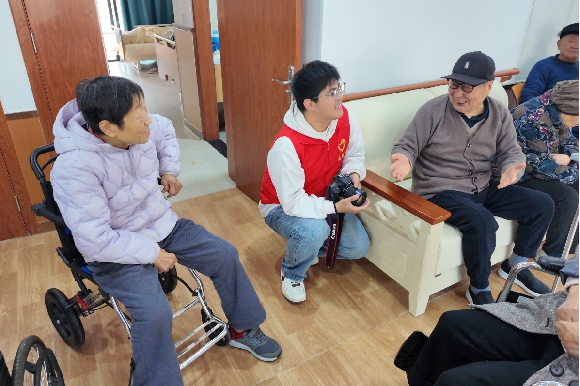 志愿者围坐老人身旁倾听往事、共话家常,在真诚沟通中给予精神慰藉,以医学人文关怀传递温暖,让老人们感受家人般的关怀。