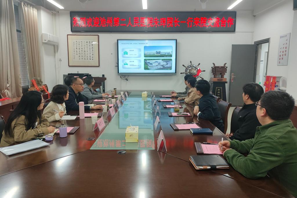 朱珲介绍了医院概况、发展规划、教学管理、师资力量等情况,并介绍了医院人才引进待遇,希望建立常态化合作机制,在教学实践、科研、人才引进等方面展开多元化合作,实现合作共赢。