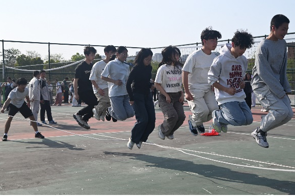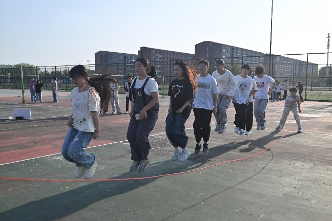 本次比赛以班级为单位组队参赛,各班级积极响应、精心选拔,每班均推选7名男生、3名女生组成10人参赛队伍,其中2名男生专门负责摇绳,形成了分工明确、配合默契的参赛阵容。赛场上,哨声一响,活力瞬间迸发。负责摇绳的男生双手紧握绳柄,发力挥绳,跳绳在空中划出一道道流畅的弧线,“呼呼”的绳风声成为赛场最激昂的背景音;参赛学子们身姿轻盈如燕,脚步敏捷灵动,伴随着绳摆的节奏纵身跳跃、稳步衔接,起落间舒展着青春的姿态,每一次跳跃都凝聚着默契与力量,每一次加速都彰显着拼搏与热血。