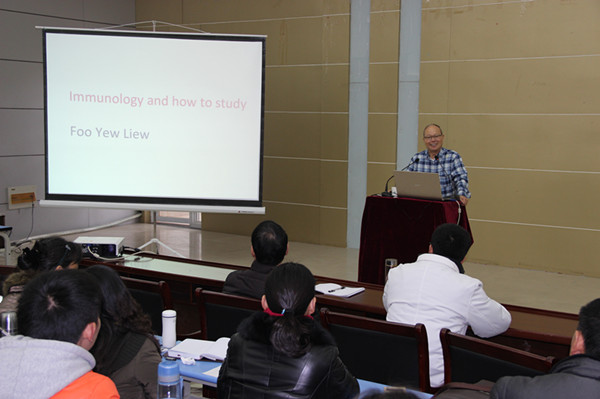 12月18日下午,英国皇家科学院院士、英国格拉斯哥大学F. Y. (EDDY) LIEW(刘富友)教授应医学院邀请,在西校区图书馆二楼报告厅做了一场精彩的学术报告。