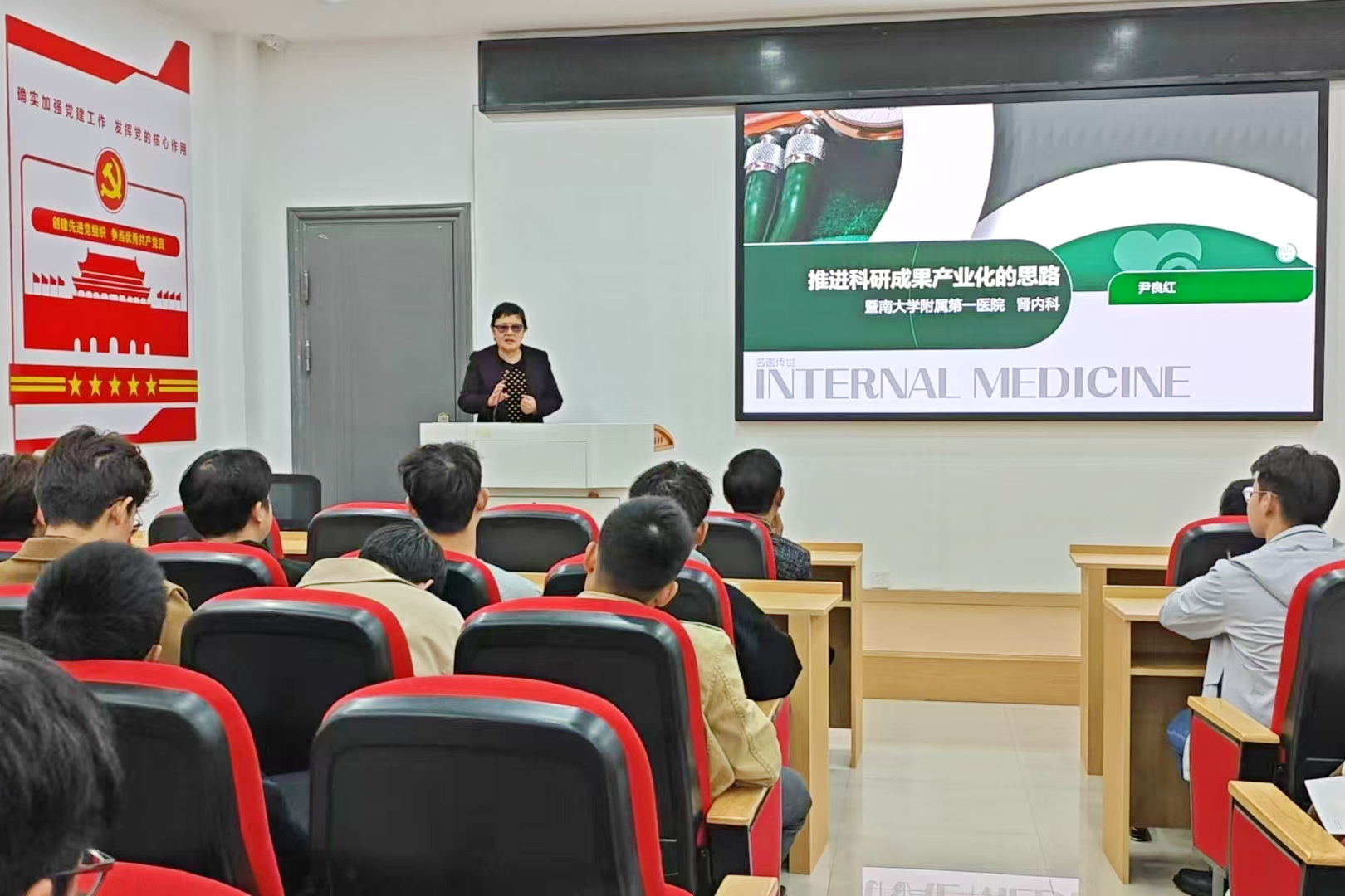 会上,尹教授分享她为了打破国外技术垄断和节省国家医疗开支,在做好临床工作同时,专注于中国首台血透机及其生产线的研发和转化的创业历程。在多年努力下,尹教授团队自主研发的透析器等多种转化产品获得了欧盟CE认证和ISO13485认证,已在多家医院推广应用,取得了良好的市场效果。此外尹教授在报告中还特别强调了临床转化的重要意义,要求大家要培养敏锐视觉,敢于创新行动。