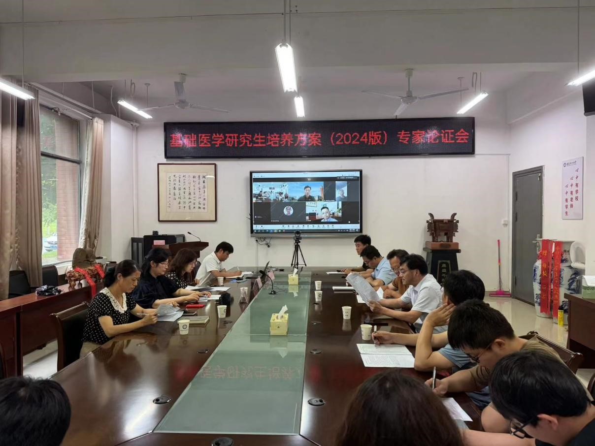 胡东代表学院感谢各位与会专家的指导,并简要介绍了学院历史沿革和学位授权点建设情况;葛德永副院长汇报了基础医学研究生培养方案制修订情况。专家组针对方案中的培养目标、主要研究方向、课程设置等内容进行了质询和讨论,重点围绕着学位点评估和高峰学科建设,对培养方案中人才培养定位、学科方向设置、学科特色凝练、课程体系优化,以及基础医学学科的核心作用及所需资源保障等方面提出了诸多建设性意见。