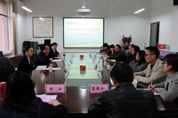 4月28日至29日,以中山大学中山医学院余新炳教授为组长的安徽省本科高校预防医学专业综合评估专家组一行6人,对我校预防医学专业进行现场评估。