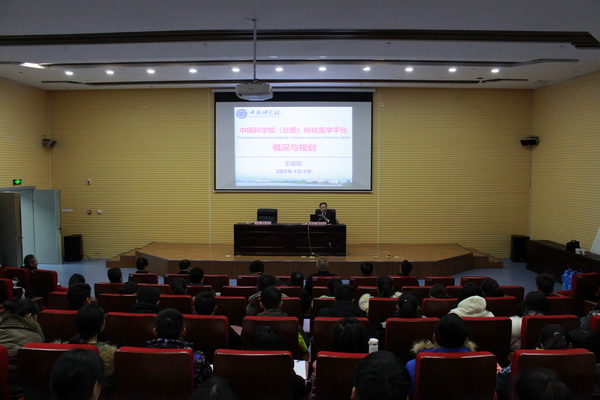12月19日下午,应医学院邀请,中科院合肥肿瘤医院院长、研究员、博士师导师王宏志在国家重点实验室报告厅,为医学院师生作了《中国科学院(合肥)转化医学平台概况与规划》的主题报告。报告会由医学院院长张荣波主持。