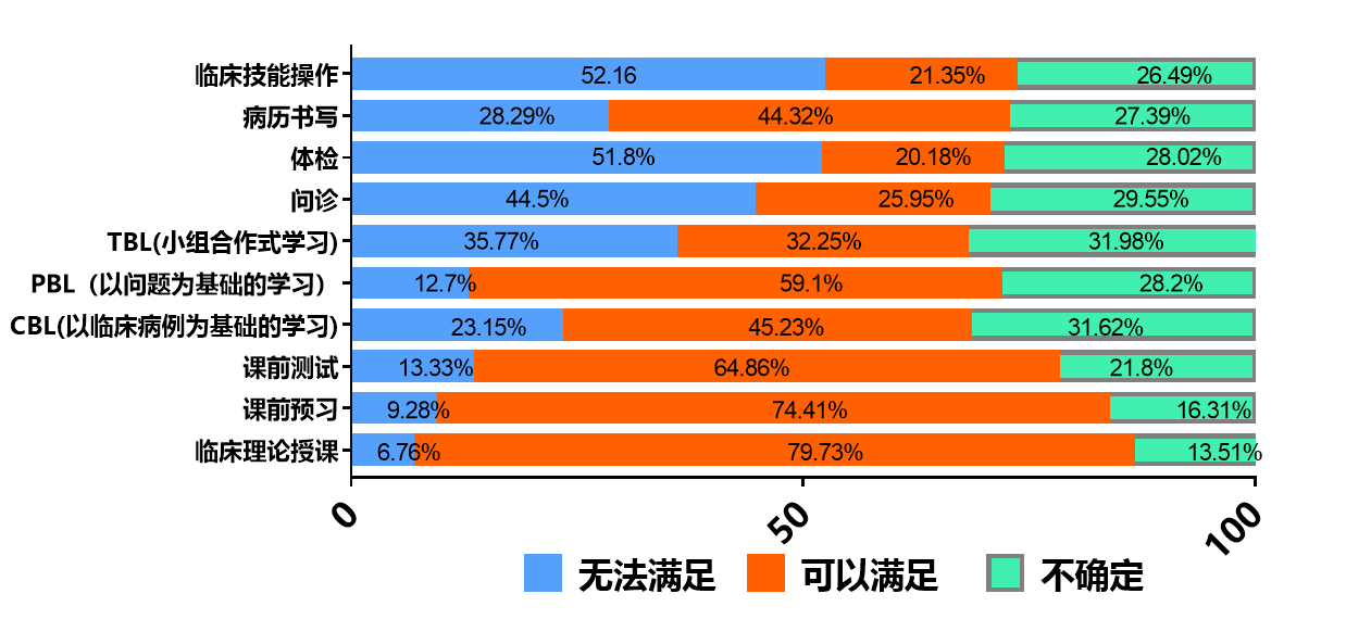 16.在线教学对临床教学的主要限制为临床技能操作、体检、问诊、TBL教学不能有效开展,对于理论授课、测试与预习影响有限。
