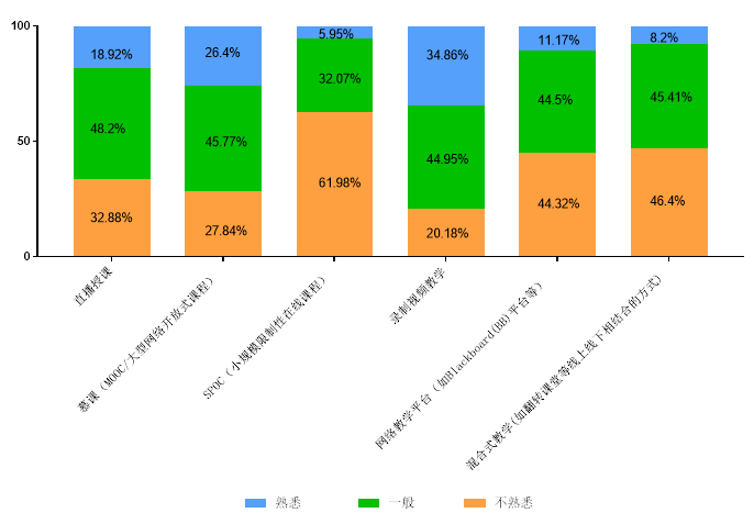 图6 学生对网络教学方式的熟悉程度