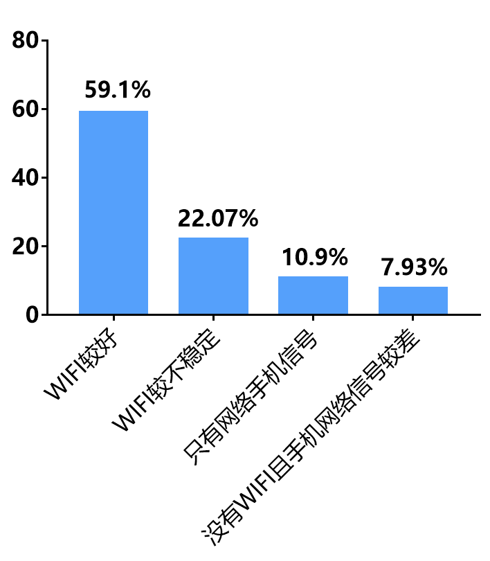 4.wifi信号不稳定达到22%,对网络学习存在一定影响,导致学生对网络学习存在的困难也与此关系较大,见图4;