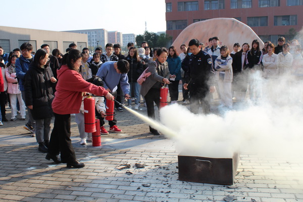 11月26日下午,学院在崇仁楼开展疏散演练,警报铃声响起,参加演练的师生按所学理论知识,在疏散人员和引导员的指引下,有序地沿消防通道快速撤离到安全区域;然后根据所学灭火器操作方法,师生亲身操作,扑灭火种。