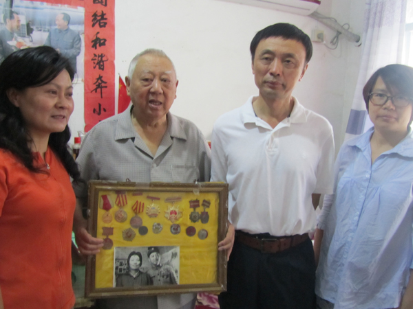 为纪念抗战胜利70周年,铭记历史、缅怀先烈,7月9日上午,医学院党委书记叶松、副书记张可佳等在职党员代表走进金岭社区,看望慰问抗战老战士、老同志及烈士家属,向他们致以崇高的敬意和诚挚的问候。