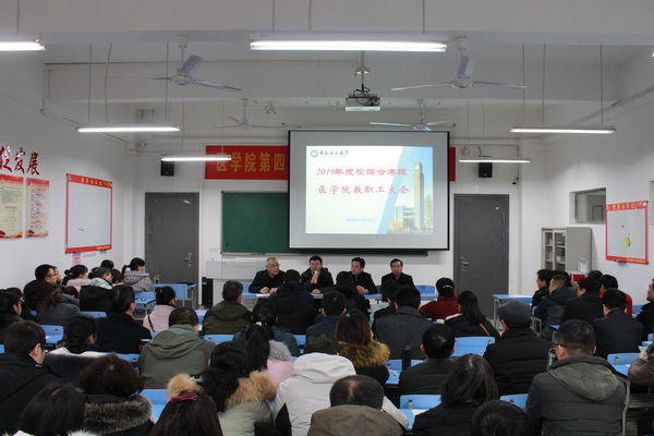 1月13日上午,医学院在崇仁楼B119室召开2019年度校综合考核教职工大会。校纪委书记周旭和综合考核组第二组成员参加了会议。会议由院党委书记刘群红主持。学院全体教职工和学生代表参加了会议。