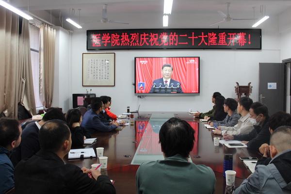 10月16日上午,举世瞩目的中国共产党第二十次全国代表大会隆重开幕。习近平总书记代表第十九届中央委员会向大会作报告。医学院组织师生党员收看了开幕大会盛况。