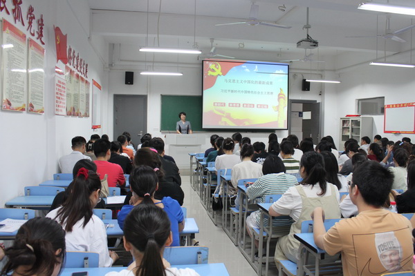 入党宣誓暨重温入党誓词大会后,院党委书记张可佳为毕业生党员上党课。她以《马克思主义中国化的最新成果——习近平新时代中国特色社会主义思想》为题,围绕新时代内涵、理论来源、实践基础和体系结构这四个方面进行了系统阐释和深入解读。她强调,全体毕业生党员要深入学习贯彻习近平新时代中国特色社会主义思想,要修身立德、坚定信念;要加强学习,投身实践;要勇于担当,成才报国。最后,她希望同学们能多关注母校,常回来看看。