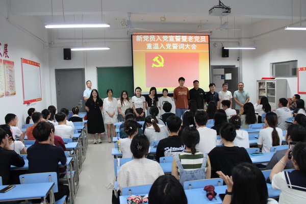 庄严的国歌唱后,毕业班辅导员吕慧敏、努尔为党员代表佩戴党员徽章,吕慧敏带领党员一起进行入党宣誓和重温誓词。毕业生党员代表刘雅茹同学代表2023届毕业生党员发言。