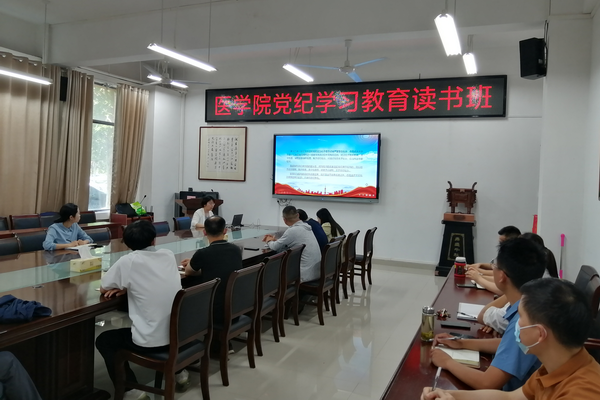5月27日下午,医学院在崇仁楼C114会议室举办党纪学习教育读书班开班式暨党纪学习教育专题党课。学院党委书记张可佳主持会议并作《中国共产党纪律处分条例》专题辅导党课。学院党委领导班子成员,纪委委员,各党支部书记、委员,全体辅导员和办公室行政人员参加会议。