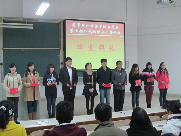 11月22日下午,医学院外国语学院分党校在医教403教室召开了第七期入党积极分子培训班毕业典礼。医学院党委书记、分党校校长张荣波参加典礼并讲话。典礼由班主任何云鹏主持。