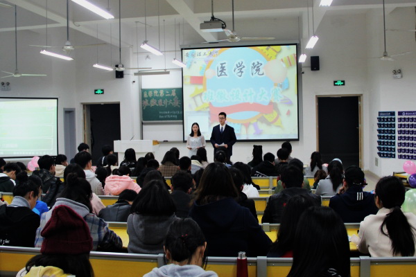 11月19日晚,医学院第二届班徽设计大赛决赛在明理楼206圆进行。辅导员和200余名新生观看了比赛。