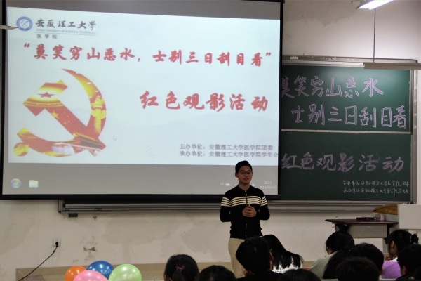 10月15日晚,医学院在明理楼106教室开展了主题为“莫笑穷山恶水,士别三日刮目看”红色观影活动。200余名新生参与了活动。
