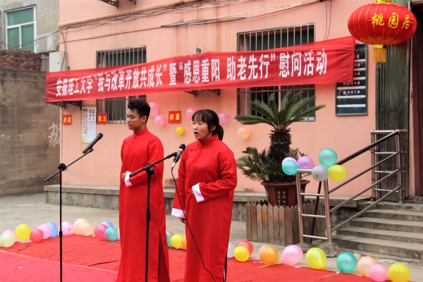 10月16日下午,在重阳节来临之际,医学院和地环学院在淮南市大通区桃园居老年公寓联合举办了以“我与改革共成长暨感恩重阳 助老先行”慰问活动。