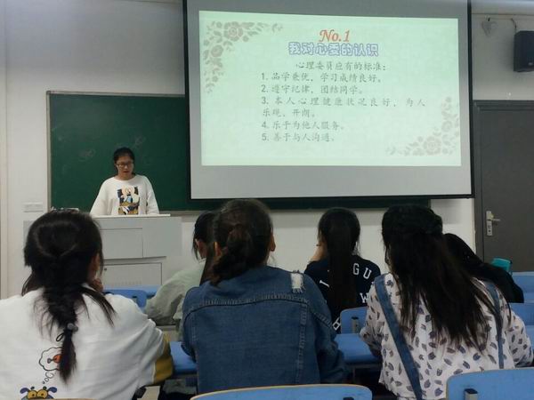 论坛以“如何做好心理委员工作”为主题,以PPT的形式进行交流,交流的内容主要有如何认识心理委员工作内涵与职责、如何理解保密原则、如何建立班级同学心理档案、如何关注心理困难同学、如何发挥朋辈心理辅导、如何利用新媒体进行心理知识宣传、如何做好班级同学心理疏导工作,如何有效开展班级心理活动等内容。