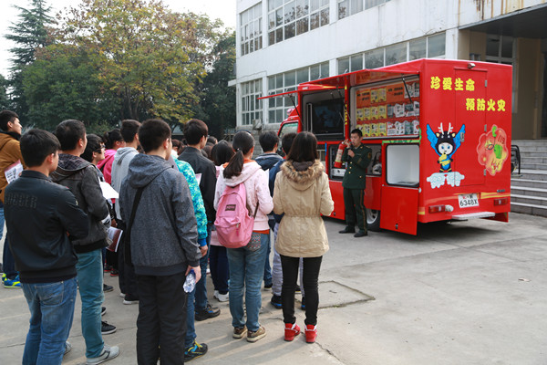 11月10日上午,应医学院团委的邀请淮南市消防支队的“卡通消防宣传车”开进西校区,为学院新生送去消防安全知识,这种新颖时尚的消防宣传车受到了同学们的欢迎。