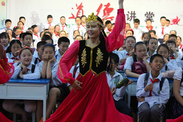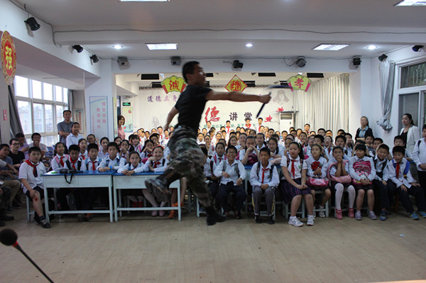 急救知识宣讲结束后,同学们还带来了文艺节目,精彩的军体拳、双节棍和民族舞赢得小学生阵阵热烈的掌声。最后毕业生将自制3个急救小药箱作为礼物赠送给小学生班级。整个活动过程中,毕业生们受到了十八小的师生的热情接待,李丽老师表示,这堂课很实用,在今后的生活中遇见意外伤害时,可以进行紧急的简单救护,更好地救助突发事件现场的伤者。