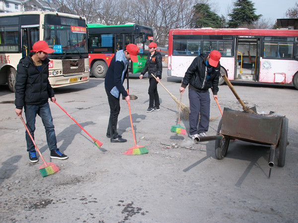 3月22日下午,医学院团委组织医检13-2班的青年志愿者们带着抹布、扫帚、拖把、水桶等清洁工具前往中北巴士公司公交车站开展义务清洁公交车活动。