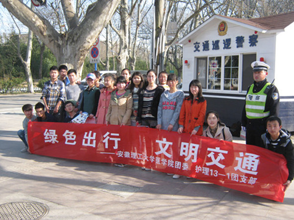 3月15日,医学院团委联合淮南市交警大队在洞山中路与广场南路交叉路口开展以“绿色出行 文明交通”为主题的交通协管志愿服务活动。