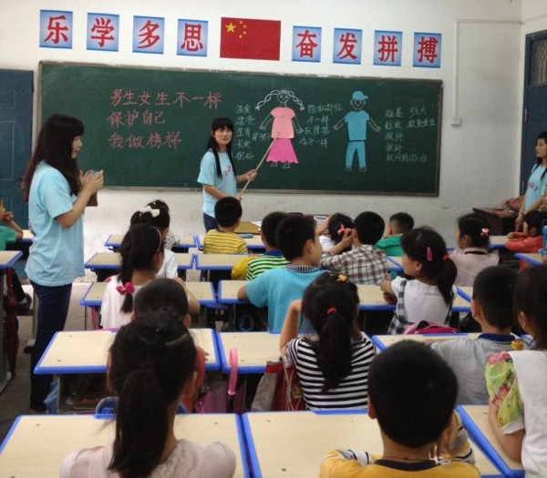 团队成员通过课堂教育引导低龄儿童明白生命的来源、男女个体生理结构的差异、正确认识心理性别以及性别承担的角色教育;高年级儿童正确认识并处理男女同学间的关系、男女身体发育的不同以及营养卫生等注意点,教授各年级学生学会保护自己的隐私部位、辨别身边的潜在威胁和正确的求助方法。