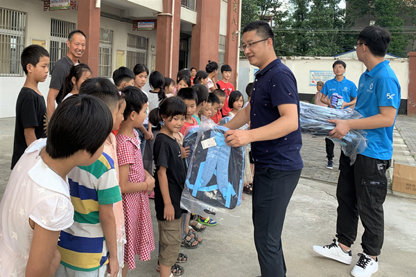 7月20日下午,志愿服务活动即将结束时,实践团队在高老小学操场举行爱心捐赠仪式,实践团志愿者、王香铺村扶贫干部及高老小学老师以及受捐助的40名学生参加捐赠仪式。我院向留守儿童捐赠新书包、文具盒、画笔和课外读物等价值4545元的学习用品。捐赠仪式后,实践团队与当地领导、师生合影留念,在孩子们的欢声笑语中,本次志愿服务活动圆满结束。