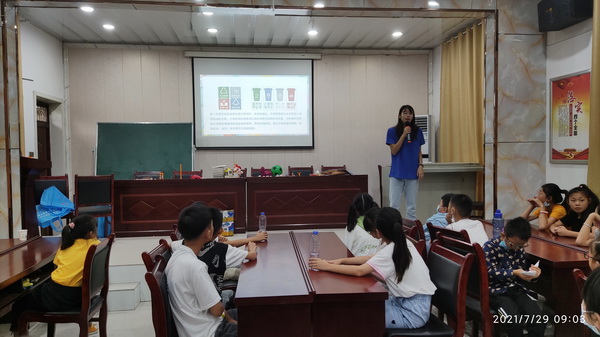 清扫结束后,志愿者们开展学习垃圾分类活动。“垃圾是什么?这种垃圾应该分为哪一类?”孩子们通过桌游以及观看视频的方式,学习垃圾分类知识。