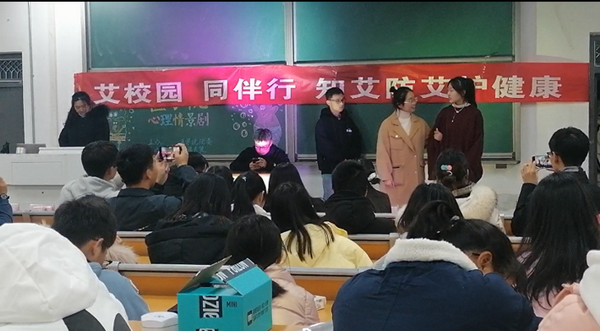 12月1日晚,医学院艾滋病预防知识宣讲团表演了艾滋心理情景剧《爱与艾》,短剧通过虚拟环境中的人物讲述疑似感染艾滋病病毒者的心路历程。再次传播了防艾知识,引导青年学子自觉抵制艾滋病传播的高危生活习惯,加深理解“自身健康第一责任人”的重要含义。