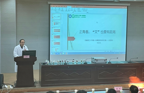 校第一附属医院、淮南市疾控中心和市禁毒办的专家针对艾滋病疫情的现状与趋势及大学生面临的艾滋病风险、毒品与艾滋病的关系、艾滋病病毒暴露后预防等内容进行了深入的讲解。现场有奖问答互动环节,得到同学踊跃参与。通过此次活动同学们更加深刻了解了相关防艾知识,并表示在以后的生活中会注重自己的健康状况,规范自己的行为习惯,也会给予艾滋病人尊重和关爱。