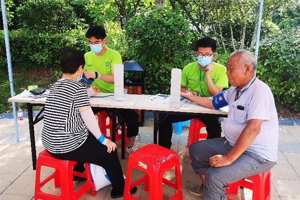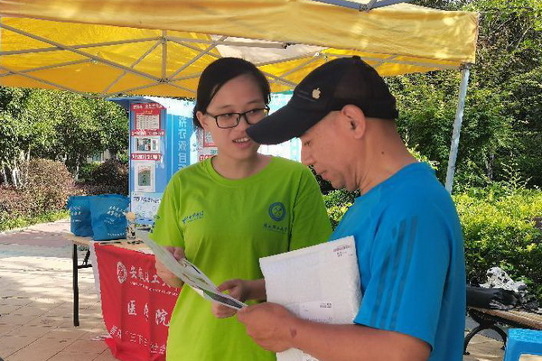 6月19日,为提高居民对高血压的认识,提高社区居民健康水平,医学院“医宣小队”暑期社会实践队在安理社区开展免费测血压和健康宣教的便民服务。