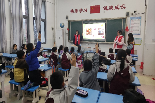 “同学们,视频里有很多食物的模型,谁能告诉我哪些是健康食品?哪些是‘垃圾食品’?”课堂上,志愿者以食品安全为主题设计课程,通过有趣易懂的课件和孩子们互动问答,用生动有趣的方式给小朋友讲解食品安全知识,引导他们从生活出发,发现生活中的问题食品、“垃圾食品”,学会对它们说“不”。同时志愿者邀请多名小朋友分享他们所做到的日常饮食方法,并告诉他们,养成良好的饮食卫生习惯在一定程度上可以减少细菌对人体的入侵,有利于保护自身的胃肠健康,降低患病的风险。还向小朋友们科普了容易导致气管堵塞的一些具有危险性的食物,告诉他们食用的时候要注意采用正确的食用方法,食用过程中不能嬉戏打闹,以免食物进入气管对自己造成安全威胁。活动结束后,志愿者为儿童们赠送了彩色铅笔、水彩笔、笔记本等学习用具。