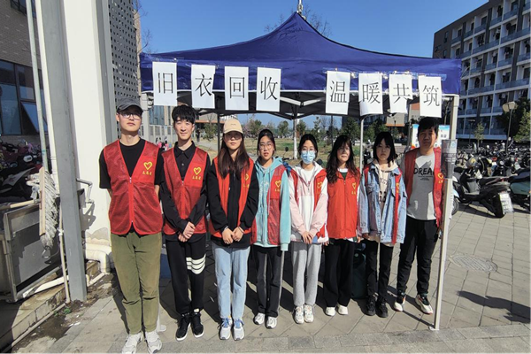 在活动开展之前,团队成员进行线上宣传,增加活动热度,以便收集足量旧衣服。动开展期间,志愿者们在义苑食堂南门设置旧衣回收点,队员们分组合作,恪尽职守,全天值班募集旧衣服,随后将收集的衣服送至淮南宝贝回家小院交与相关负责人,待冬天到来之际将旧衣服作为小动物们的小窝。